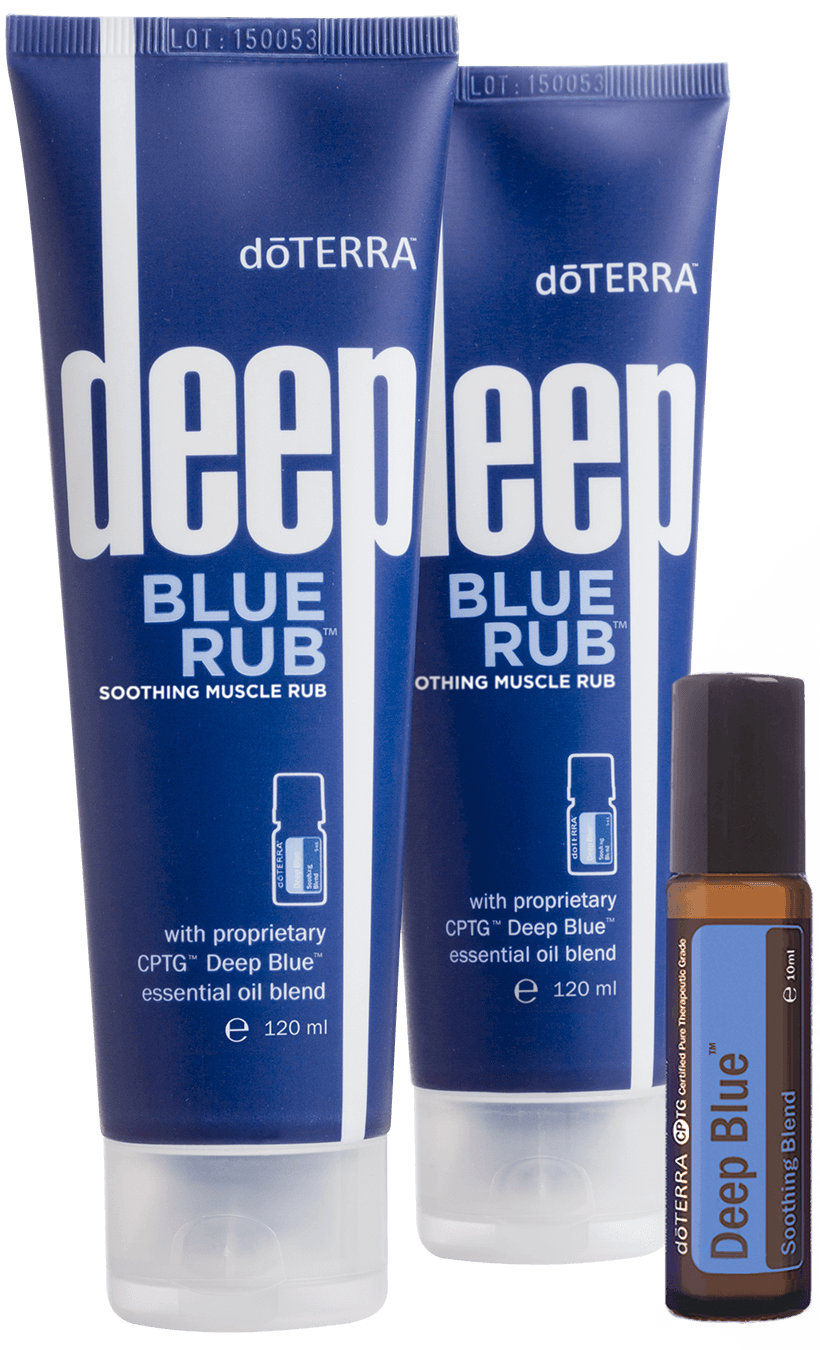 Deep Blue® Rub: Eines der beliebtesten Produkte von doTERRA, Deep Blue Rub, ist eine topische Creme, die mit Deep Blue Soothing Blend, natürlichen Pflanzenextrakten und anderen hilfreichen Inhaltsstoffen angereichert ist. Bei topischer Anwendung auf Problemzonen sorgt Deep Blue Rub für ein kühlendes und beruhigendes Gefühl. Diese Creme fettet nicht und versorgt die Haut mit Feuchtigkeit.
